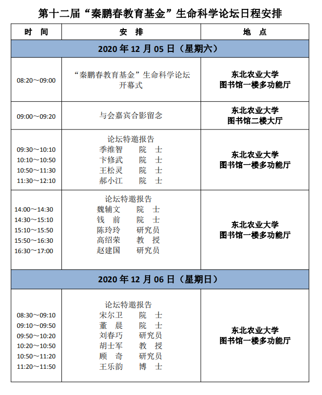 第十二届“秦鹏春教育基金”生命科学论坛日程安排