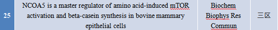 Xiaohan Yuan, Li Zhang, Yingjun Cui,Yanbo Yu,Xuejun Gao,Jinxia Ao*. NCOA5 is a master regulator of amino acid-induced mTOR activation and b-casein synthesis in bovine mammary epithelial cells.Biochemical and Biophysical Research Communications.2020, 529:569-574.
