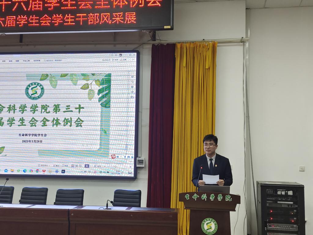 3月28日晚,伟德国际victor1946学生会于实验楼举行全体例会暨学生干部风采展,出席本次会议的有学生会秘书长杜壮老师、学生会主席团及各部门部长。本次会议由学生会主席团成员姜一凡主持。
