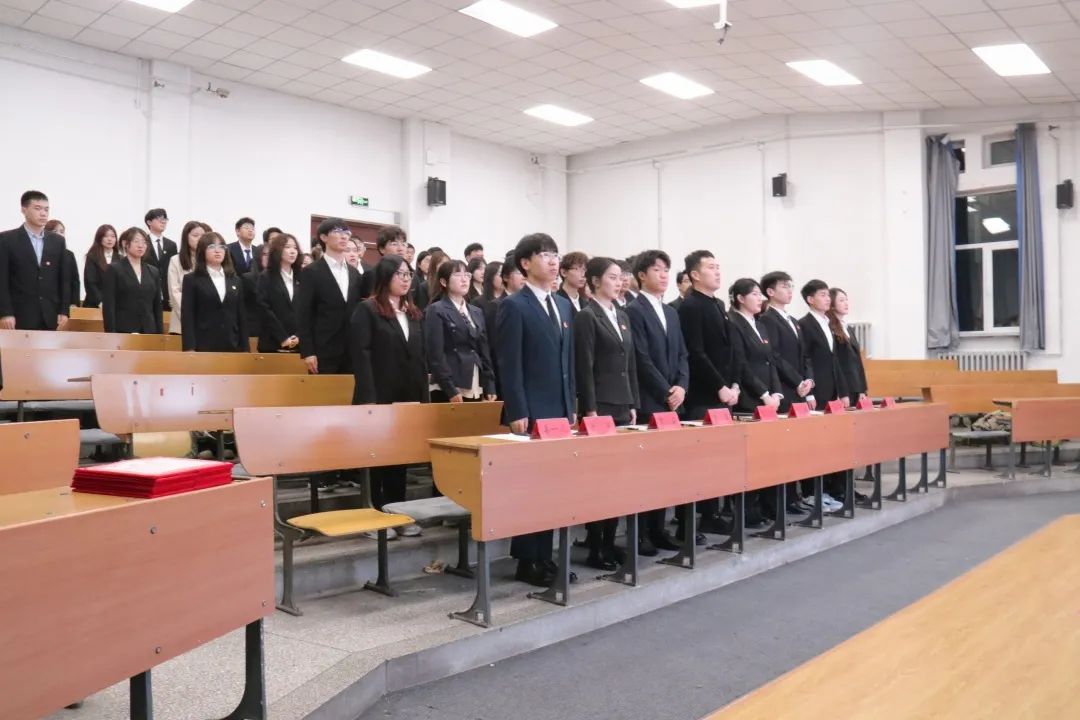 会议第一项,全体成员起立,奏唱国歌,威严的歌声中表达了学生会成员对祖国深厚的热爱以及坚定不移跟党走的信念和决心。