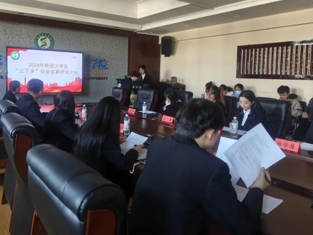 为深入学习贯彻习近平新时代中国特色社会主义思想和党的二十大以来精神与内涵,特别是习近平总书记关于青年工作的重要思想,围绕立德树人根本任务,强化实践育人成效,坚持教育同生产劳动和社会实践相结合,引导广大青年学生在亲身参与中了解社会、认识国情,努力成长为德智体美劳全面发展的社会主义建设者和接班人,立志做有理想、敢担当、能吃苦、肯奋斗的新时代好青年,3月10日,我院2024年寒假大学生“三下乡"社会实践评比大会在实验楼610顺利举行。