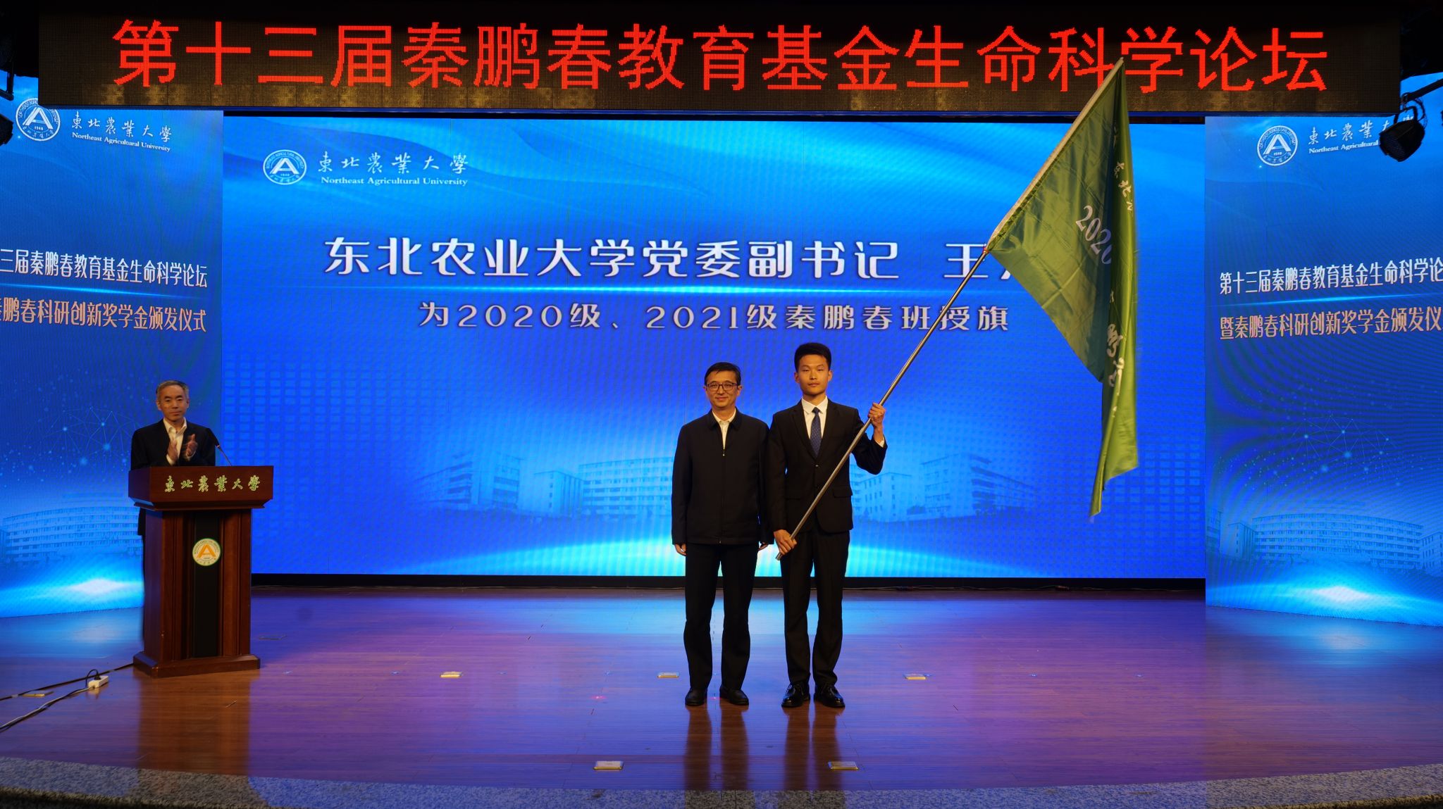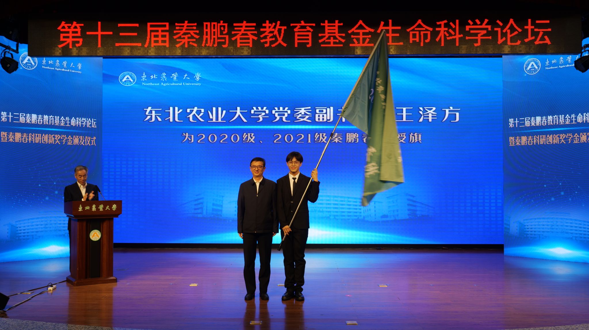 王泽方为2020级和2021级秦鹏春班授旗。
