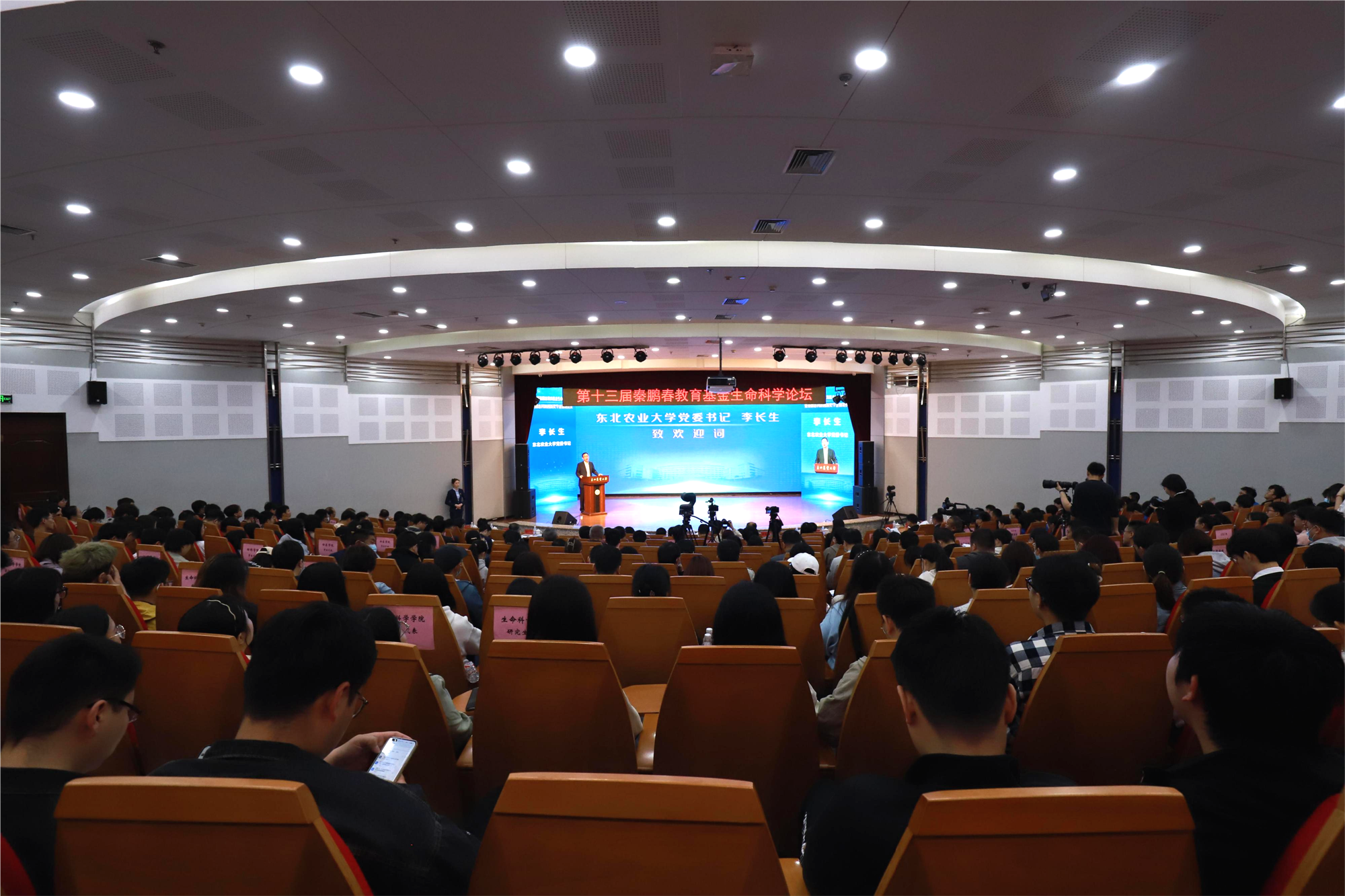 李长生代表学校致欢迎辞,他对莅临论坛的各位嘉宾和校友表示热烈的欢迎,对荣获“秦鹏春科研创新奖学金”和被遴选为“2021级秦鹏春班”的全体同学表示祝贺,对一直以来关心和支持东农发展的各界人士表示敬意。他指出,秦鹏春先生是我国著名的动物组织胚胎学家、教育家,一生淡泊名利、潜心修学,执着于科研事业,为学校生物学科建设奠定了坚实基础,为中国乃至世界胚胎学研究作出了突出贡献。秦鹏春教育基金在广大校友和业界同行专家的关心支持下,不断发展壮大,已成为受到校内外广泛关注和充分认可的基金品牌。“秦鹏春科研创新奖学金”的奖励和“秦鹏春班”的遴选范围,将扩大到学校与生物学有关的学科专业,既是学校创新人才培养模式、创建拔尖人才培养基地的重要举措,更是对秦鹏春先生精神的传承与发扬。他表示,希望广大师生进一步传承和弘扬秦鹏春先生的精神,潜心治学、厚植情怀、志存高远、脚踏实地,不负时代、不负青春,为加快推进中国式农业农村现代化、为全面建设社会主义现代化国家、全面推进中华民族伟大复兴而团结奋斗。