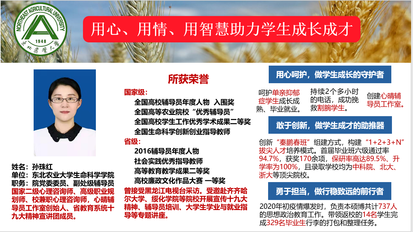 龙江最美高校辅导员获奖者孙珠红