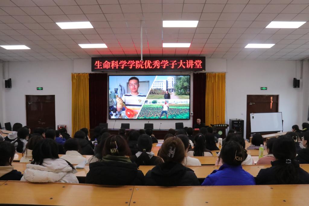 肖奕博在报告中对母校的培养、关注、支持表示感谢。他回顾了自己在母校生活与成长的点点滴滴,分享了自己学习科研、勤工俭学、学生干部、创业实践的经历与收获,并向同学们介绍了生物领域的发展前景,鼓励学弟学妹们要树立专业信心,尽早确定目标,善于独立思考,积极参加活动,主动争取机会,敢于挑战自我,懂得感恩包容和拥有集体主义观念。在互动环节,肖奕博针对现场同学提出的“如何选择专业与今后研究方向”“如何参与科研团队并发表高水平论文”“如何增强团队凝聚力”“如何参加假期实习”等问题进行耐心解答。