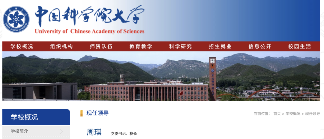 5月22日,中国科学院大学网站已更新现任领导介绍,我院校友,中国科学院副院长、党组成员周琪院士兼任中国科学院大学党委书记、校长。