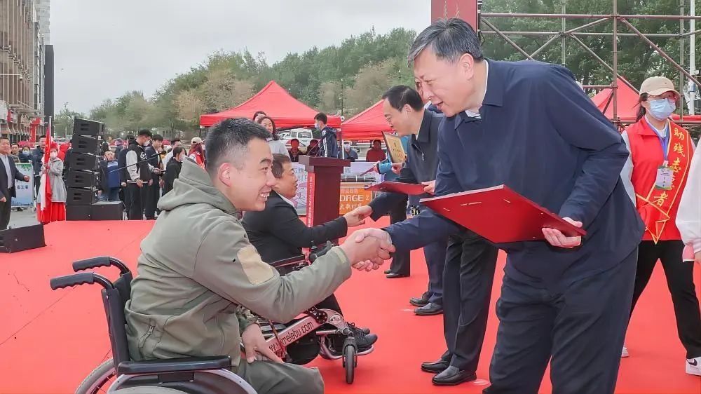 5月21日,在第三十三次全国助残日到来之际,伟德bv1946国际文化教育学院青年志愿者服务站、伟德国际victor1946青年志愿者服务站、动物科学技术青年志愿者服务站、经济管理学院青年志愿者服务站、电气与信息学院青年志愿者服务站、农学院青年志愿者服务站联合举办由黑龙江省残联组织的助残日志愿活动,本次活动在哈尔滨市道里区防洪纪念塔广场启动,以“完善残疾人社会保障制度和关爱服务体系,促进残疾人事业全面发展”为主题,促进残疾人就业创业为主要内容。副省长余建出席启动仪式。