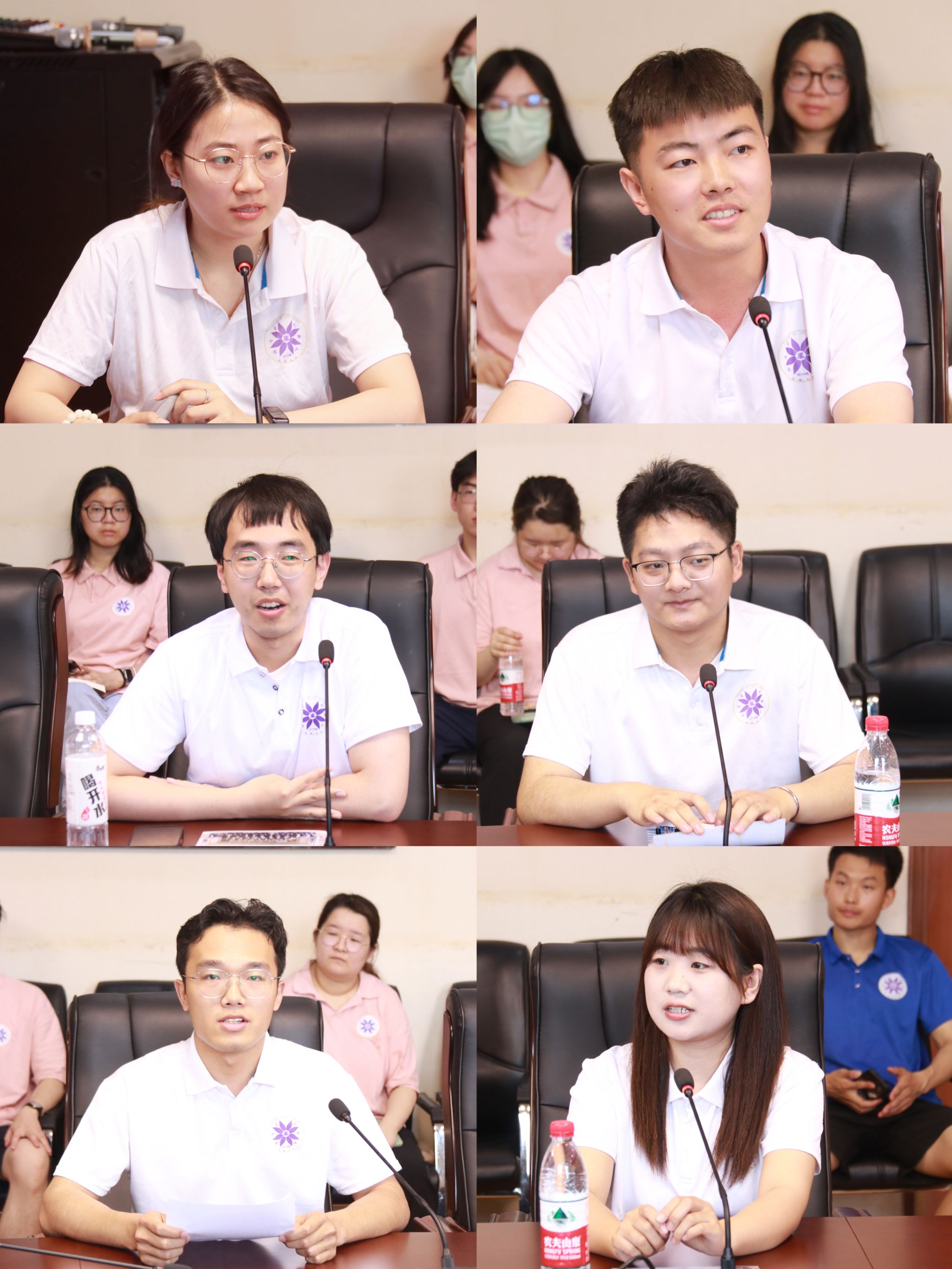 随后,毕业生们踊跃发言,回顾在校学习、成长的点滴故事,分享了大学四年的所思所想、所感所悟,表达了对母校和学院培养的感激之情,并围绕班级建设、科研训练、英语能力提升等方面建言献策。曹树琦、冯帅洋对一直以来关心关注班级发展建设的各位校友、领导和老师们表示衷心的感谢,他们表示,是大家用心的设计、倾情的付出、无私的奉献,让同学们拥有了良好的学习环境、宝贵的锻炼机会、广阔的学术视野、全面的综合能力以及即将踏上的丰富发展平台,站在新的起点,将心怀感恩、不负所望,奋勇向前。程琬婷、李子轩回顾了班级在中科院暑期科研训练营的收获和体会,近距离感受到了周琪院士、王红梅研究员等科研工作者严谨认真的求实精神、敢为人先的创新精神、甘为人梯的育人精神;陶伟业、刘睿昊结合自身学习成长经历向师弟师妹们分享了经验、提出了建议,他们表示,要始终牢记班级宗旨,明确目标方向,弘扬秦鹏春先生等老一辈科学家的精神,不断把“秦鹏春班”的牌子传的更远,扛的更久,练好修为,提升能力,做好科研,尽快成长为国家需要的杰出人才。