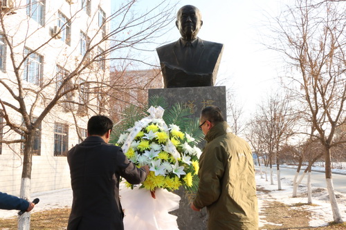 | 周琪、成华风作为校友代表向秦先生铜像敬献花篮 |