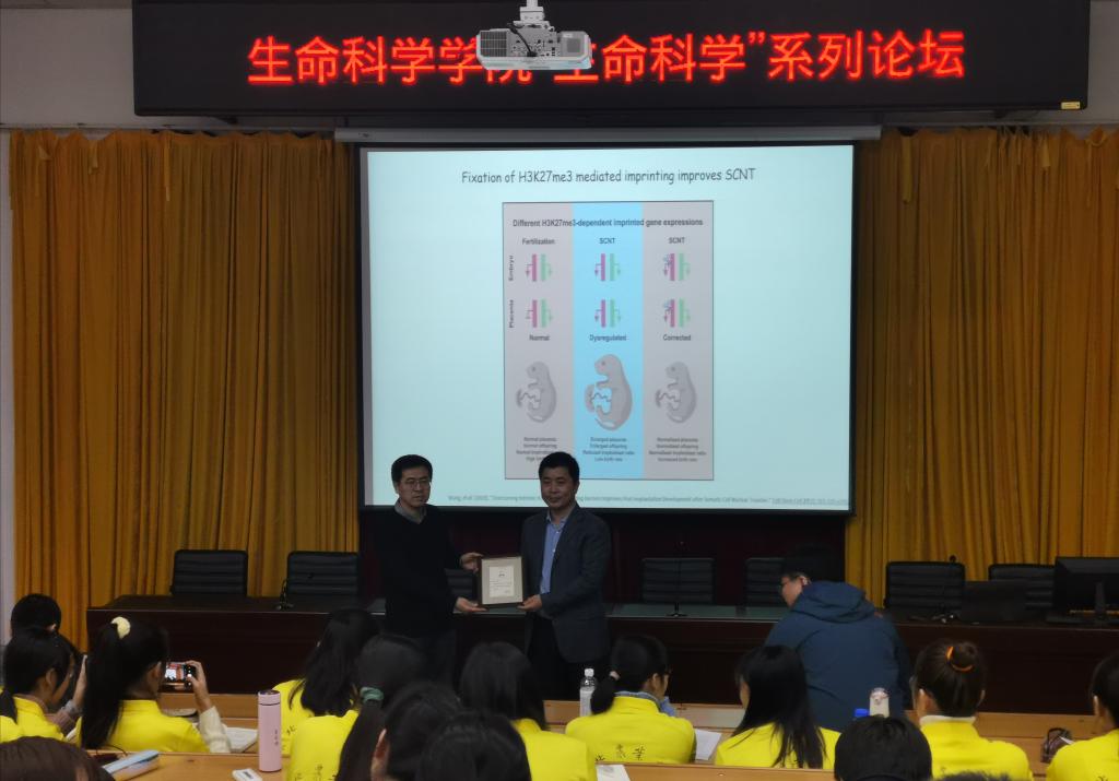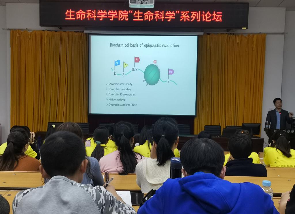 陆发隆研究员为同学们带来题为《哺乳动物生命起始阶段表观基因组的编程与重编程》的报告,他以风趣易懂的语言介绍了DNA序列之外的信息在细胞命运决定中的调控机制研究,包括染色质以及RNA转录后调控等。陆发隆分享了自己从北京大学读本科到北卡罗纳大学进行博士后研究,再到中国科学院遗传与发育生物学研究所工作的经历,并鼓励同学们勤奋求实、脚踏实地,为生命科学领域做出自己的贡献。期间,陆发隆与同学们交流了如何拓展科研思路、如何面对科研中的挫折等问题。