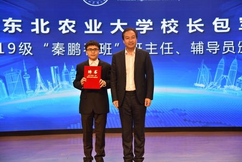 校长包军为秦鹏春班校外班主任王红梅研究员、校内班主任翁晓刚副研究员、辅导员杜壮老师颁发聘书