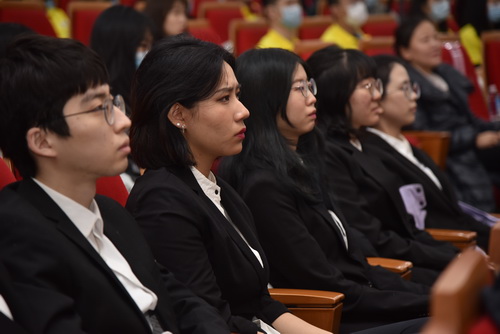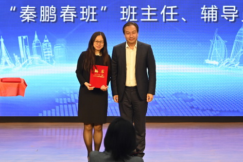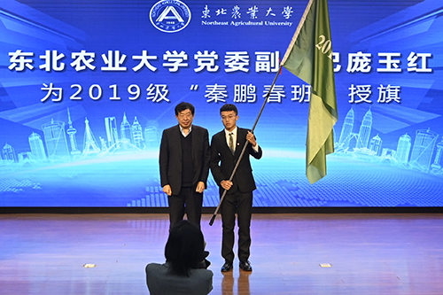 校党委副书记庞玉红为2019级“秦鹏春班”授旗