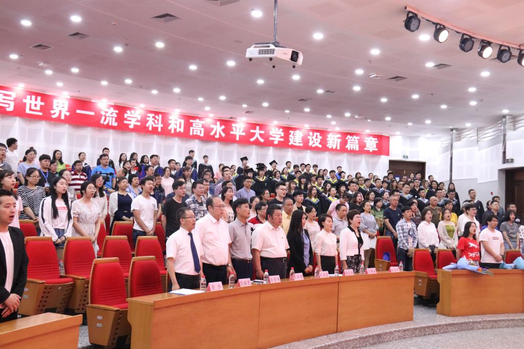 6月19日下午,伟德国际victor19462019届学生毕业典礼暨学位授予仪式在图书馆一楼报告厅举行。教务处处长王杜春、招生与就业指导处处长宋跃芬、学生工作处处长徐国峰、研究生院副院长彭胜民、校团委副书记高天琦,学院党委书记施喜军,院长栾非时,副院长李杰及学院学位分委员会全体成员、全体教师和300余名毕业生、40余名毕业生家长代表共同参加会议。毕业典礼由施喜军主持,学位授予仪式由李杰主持。