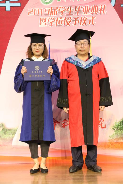 | 教务处处长王杜春、研究生院副院长彭胜民为2019届优秀毕业生颁发纪念奖牌 |