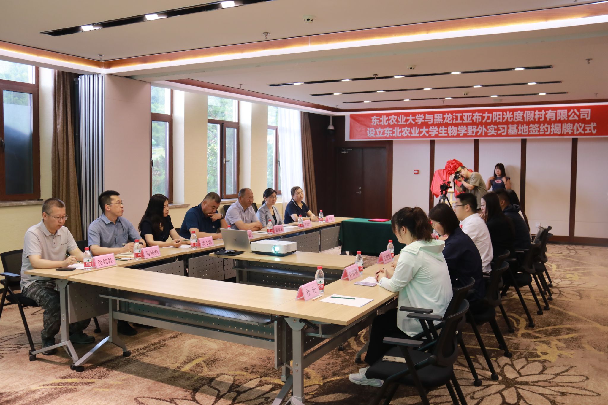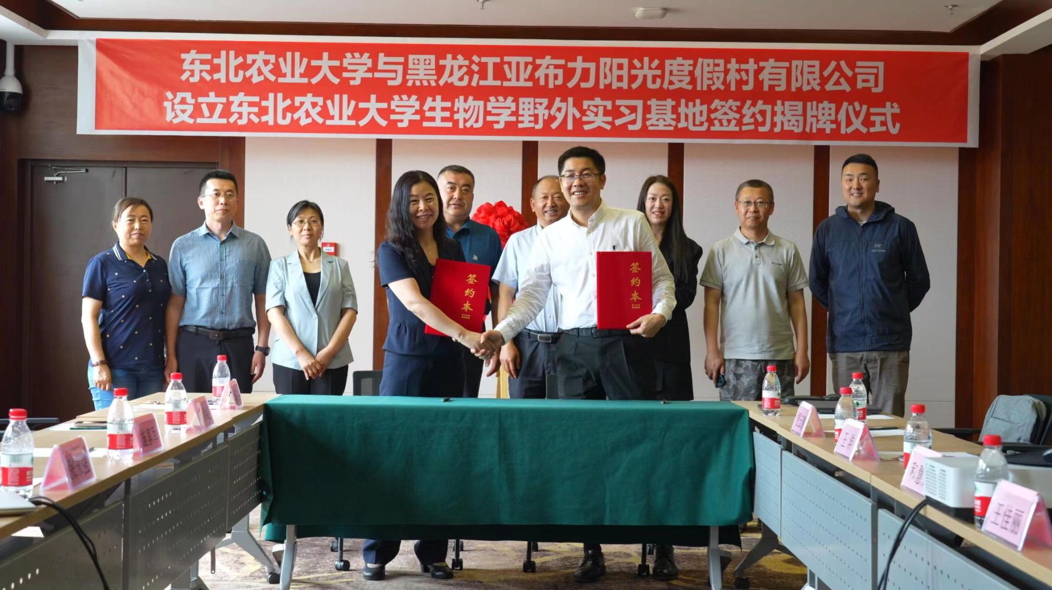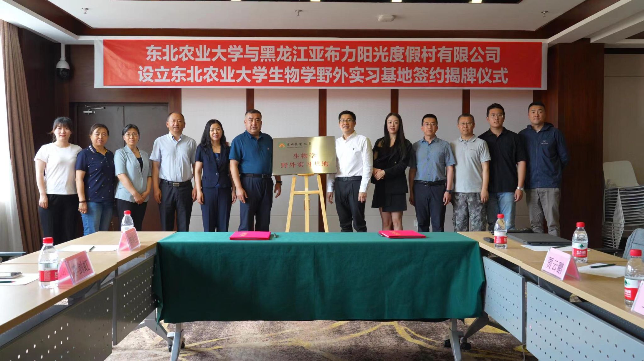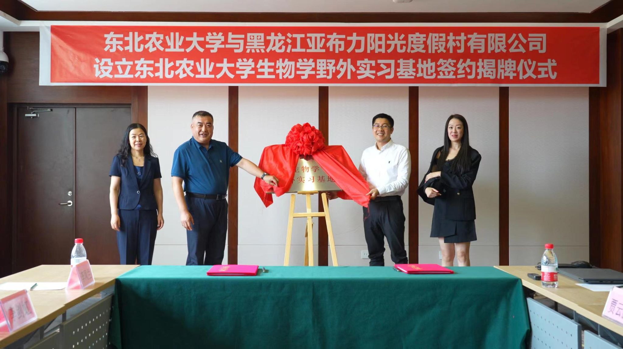 武小霞代表学院与黑龙江亚布力阳光度假村有限公司签署合作协议,张永强、和慧杰等共同为伟德bv1946生物学野外实习基地揭牌。