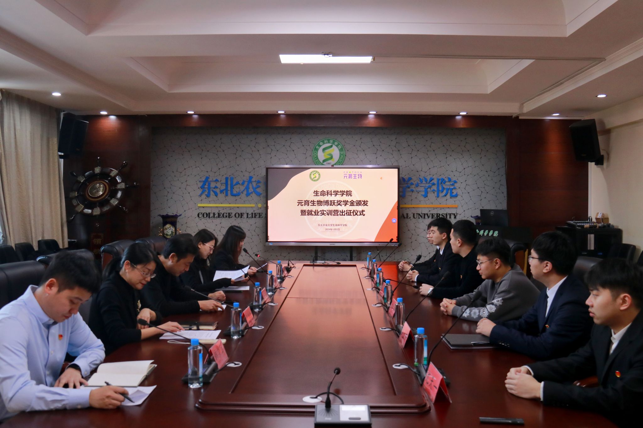 全体师生共同观看了珠海元育生物科技有限公司宣传片。孙珠红详细介绍了元育生物博跃奖学金的设立背景和首届元育生物就业实训营的相关日程安排,她希望获奖同学能弘扬“艰苦奋斗 自强不息”的东农精神,传承“勇于创新、追求卓越”的生命院风,珍惜宝贵机会,积极主动学习,努力提高专业本领,不断提升就业竞争力,在实训营中展现良好的东农学子风貌。