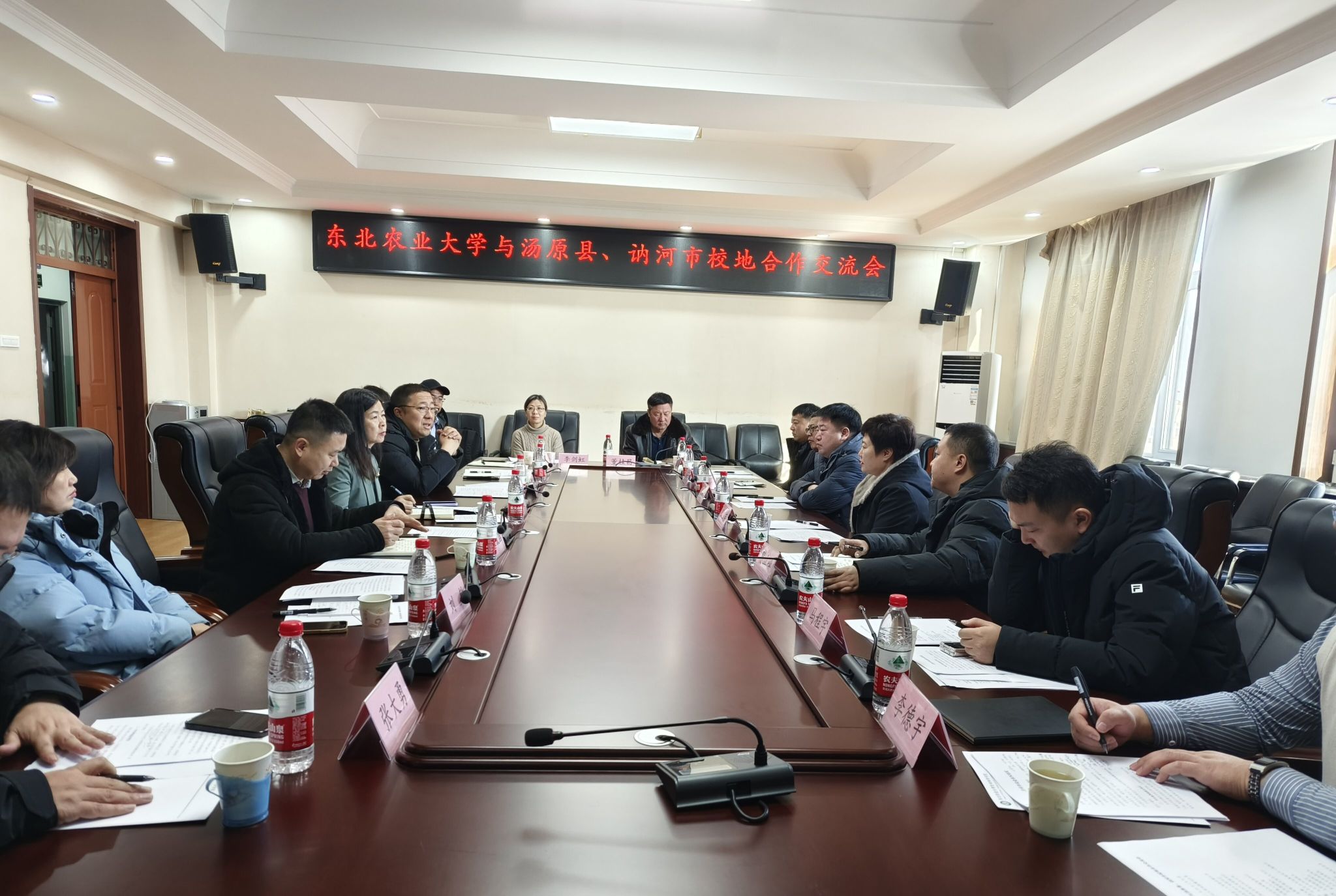 1月25日,汤原县县人大常委会副主任李玉英、讷河市老莱镇党委书记杨其光等一行8人来我校开展校地合作交流座谈。我校社会合作与成果转化中心副院长李其林、我院院长武小霞、农学院副院长王敬国、食品学院副院长李良、我院副院长李剑虹、动物科技学院刘敏教授、农学院张大勇教授、齐齐哈尔东农校友会会长崔正国等参加座谈会。会议由武小霞主持。