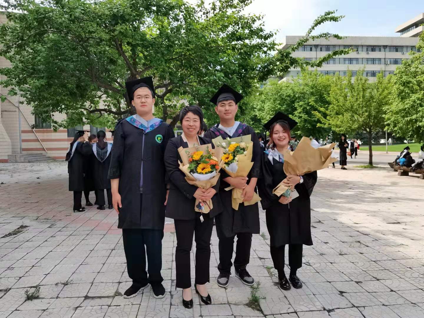 与毕业生合影