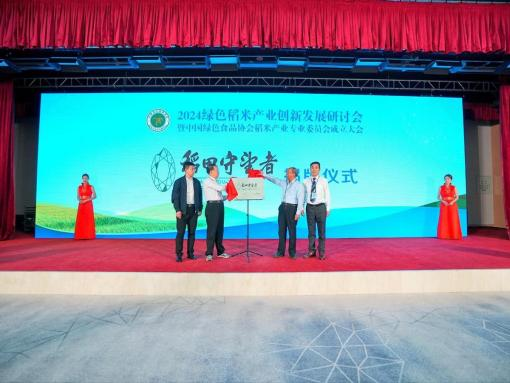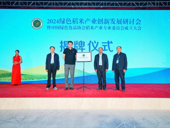谢华安院士,刘平主任,陈良秘书长,丁浩秘书长为中国绿色食品协会稻米产业专业委员会揭牌。