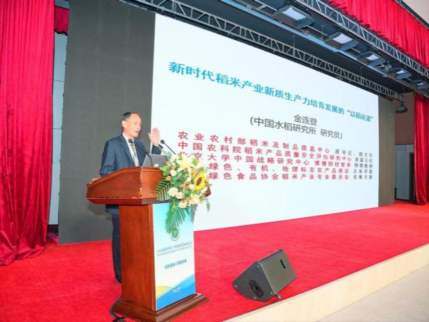 中国绿色食品协会稻米产业专业委员会名誉主委金连登代表“中国绿协稻专委”做了题为《对接国家乡村全面振兴目标,服务于稻米全产业新质生产力培育与形成》的讲话,表达了:必须与时俱进,顺应时代发展趋势,担当推进稻米全产业绿色发展的崇高责任,为保障国家粮食安全战略实施和稻米产业转型升级,提质增效作出新的贡献!