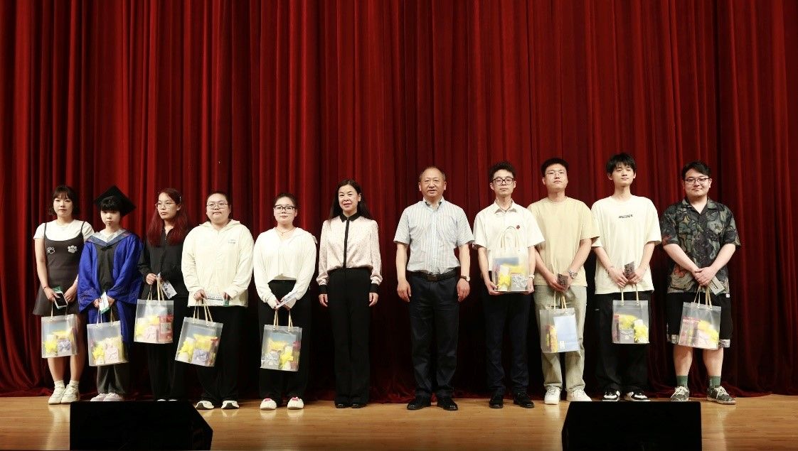 抽奖环节,学院领导为幸运毕业生们颁发了承载着祝福和期望的毕业大礼包,印有学院院徽的帆布袋寓意着扬“帆”起航,学习用品套装寓意着“学”无止境、乐事薯片寓意着“乐”观向上、四枚定制的徽章套组寓意着“彰”显未来,现场气氛热烈,同学们备受感动。