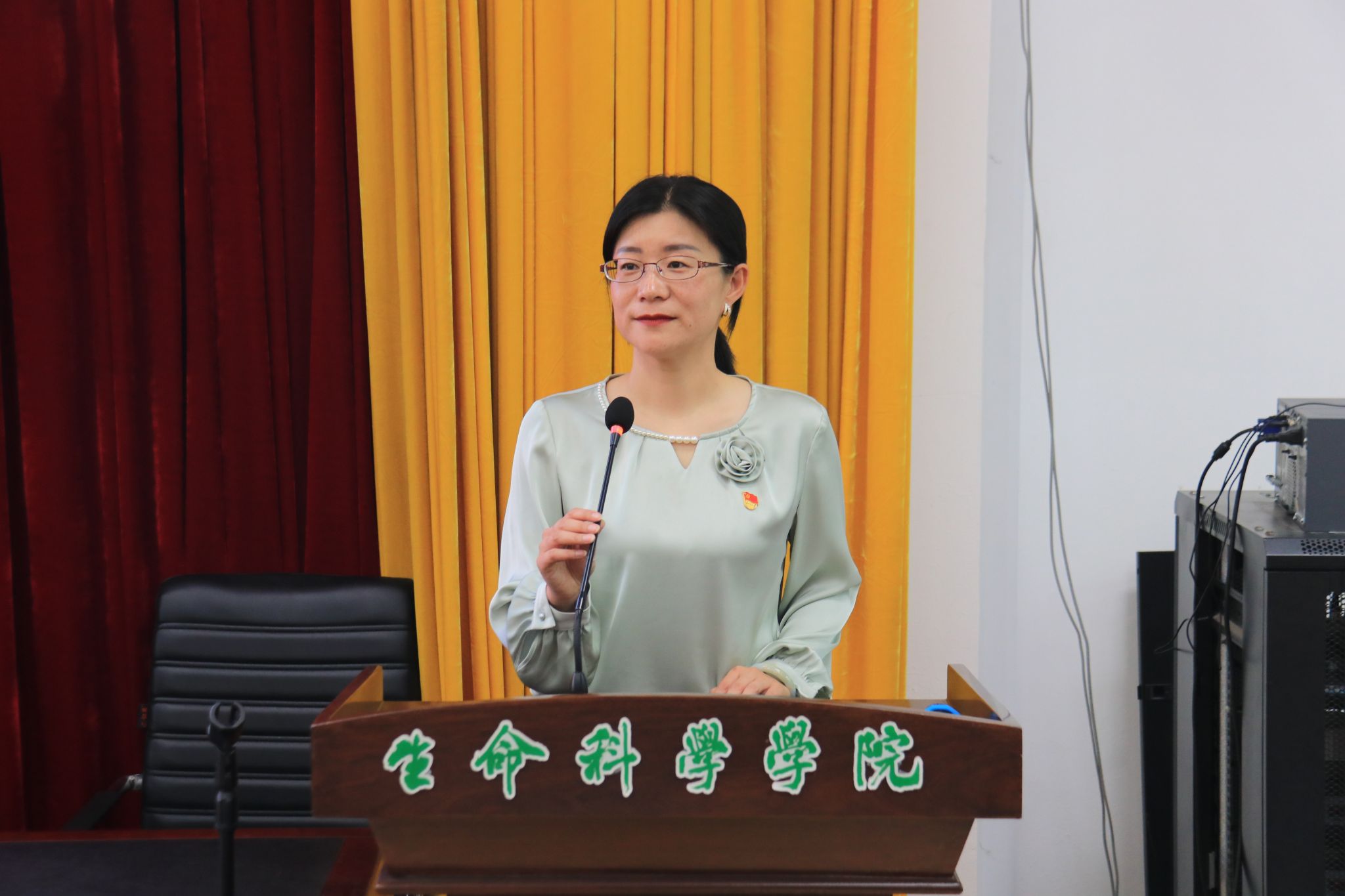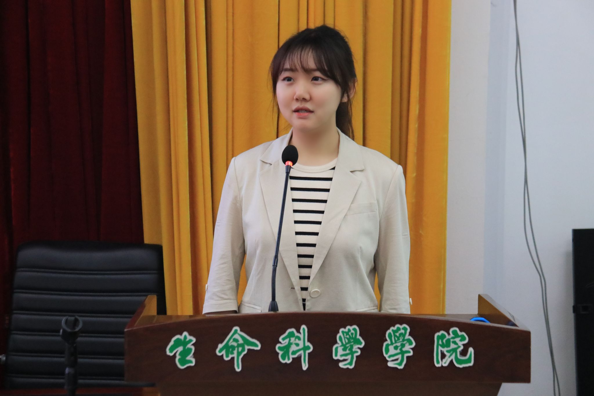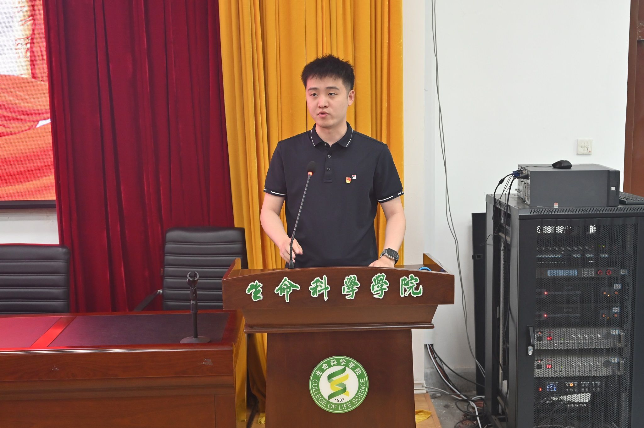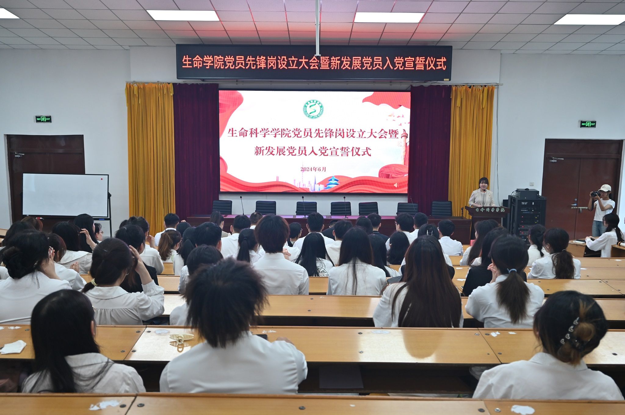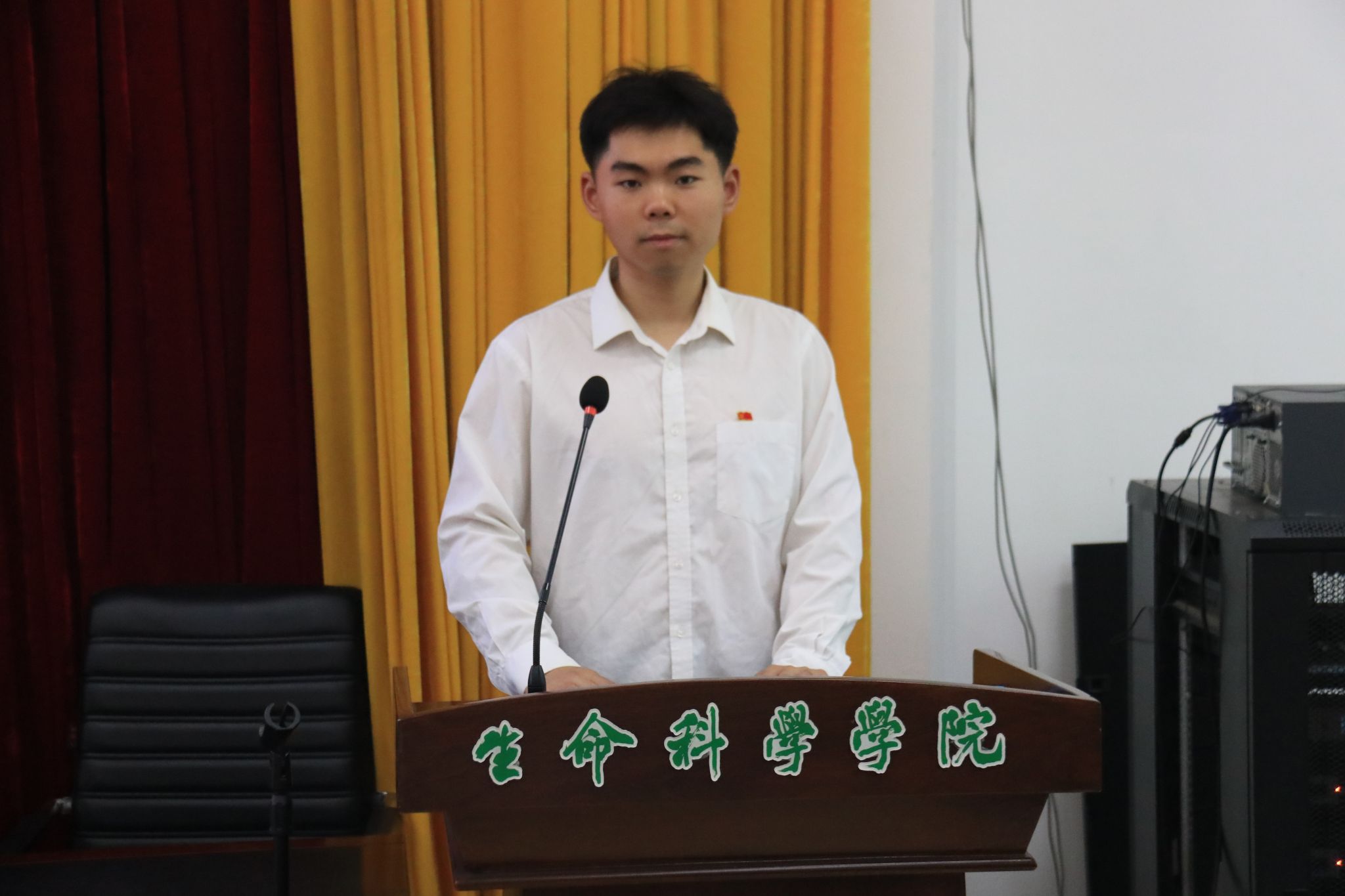 新党员代表、生科2281班范学嘉表示,在鲜红的党旗下庄严宣誓,令人热血沸腾、心潮澎湃。她代表新发展党员向党组织郑重承诺:努力做到坚定理想信念,永葆政治本色;提高综合能力,练就过硬本领;立足时代使命,创先争优做表率。