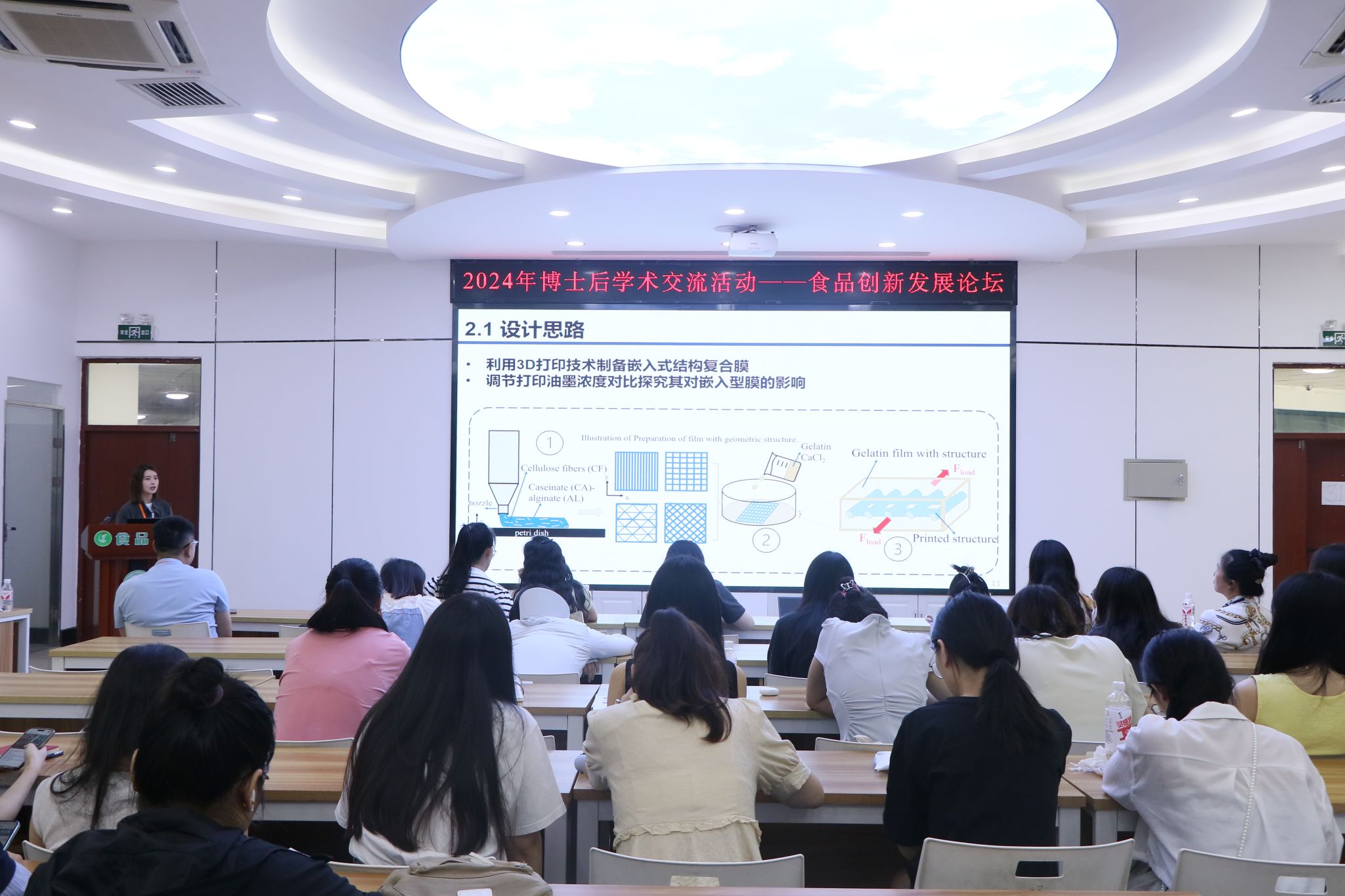 食品科学与工程博士后科研流动站分论坛以“ 食品创新发展”为主题在食品学院315会议室举行,报告会由学院行政负责人李良主持,食品学院李柏良教授、刘璐副教授、王菁副教授、李雪副教授以及全职博士后孙红波、解伟纯博士做了专题报告。