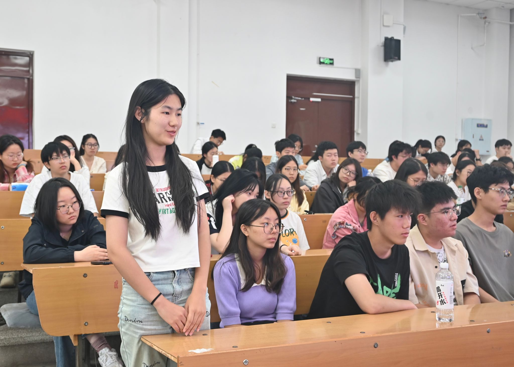 孙珠红代表学院向两位优秀校友回到母校表示热烈的欢迎,对他们时刻心系母校、用实际行动反哺母校、助力学生成长成才表示衷心的感谢。同时,她对同学们提出三点希望,一是要以优秀校友为榜样,时刻怀揣感恩之心,传承生命优良基因,在实现人生价值中积极回馈社会、回报母校;二是要提升专业素养,练就过硬本领,激发自身内驱力,强化学习意识,树立良好学习习惯和学习态度;三是要树立远大目标、合理目标,做好大学规划、职业生涯规划,主动拓宽视野,全面提升自我,努力成为国家所需、行业所需的栋梁之材。