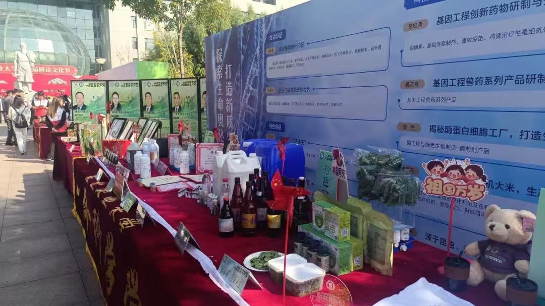 学院以“探索生命奥秘,打造新质生产力”为布展主题,设置了“生命印记”“特色食品”“科技成果”“文创作品”四个展示区。