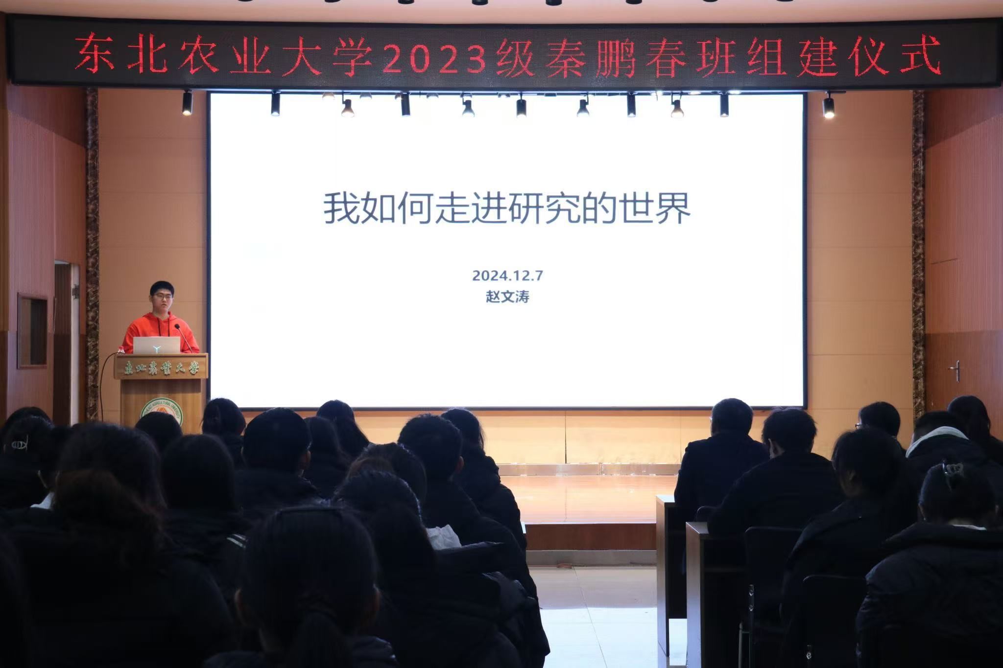 为传承和弘扬秦鹏春先生精神,创新拔尖人才培养模式,提升人才培养质量,培养更多信念坚定、笃志科研、具有国际视野和家国情怀的生物领域未来人才,12月7日上午,伟德bv19462023级秦鹏春班组建仪式在音乐厅109会议室举行。中国科学院动物研究所副所长、秦鹏春班校外班主任王红梅,伟德bv1946副校长、秦鹏春教育基金秘书长刘忠华,学生工作部(学生处、武装部)部(处)长于兴业,教务处副处长蔡文鹏,园艺园林学院副院长秦栋,资源与环境学院副院长姜昭,动物科学技术学院副院长张攀,动物医学学院副院长李巍,食品学院副院长刘骞,中国科学院器官再生与智造重点实验室秘书宁立娜,伟德国际victor1946领导班子成员、教师代表及2022级、2023级秦鹏春班全体成员参加仪式。仪式由伟德国际victor1946党委副书记孙珠红主持。
