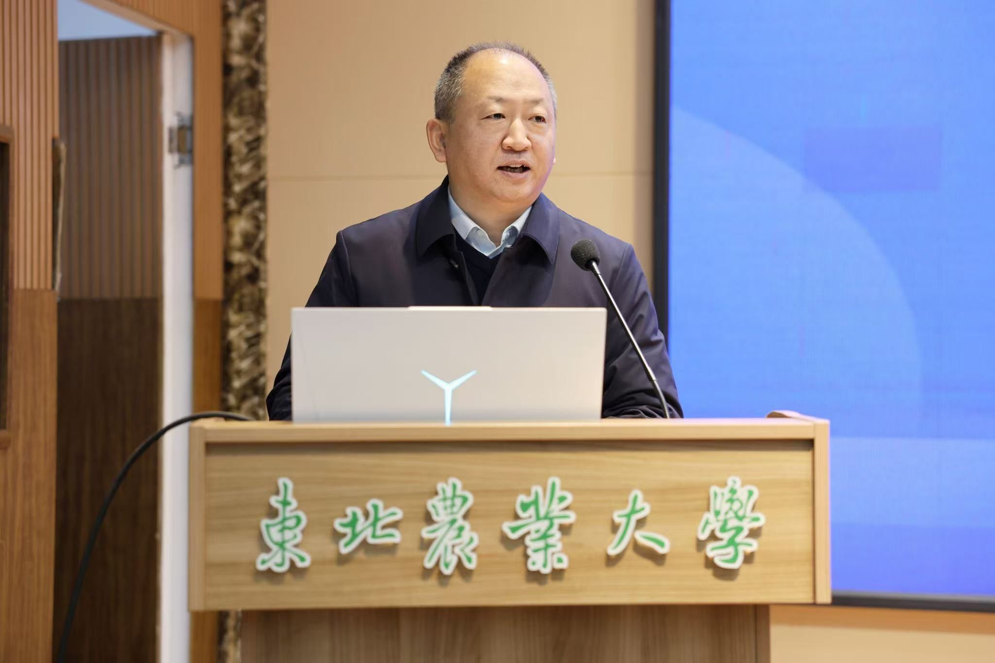 刘忠华在讲话中代表学校和秦鹏春教育基金向被新遴选为秦鹏春班的全体同学表示祝贺,向担任班级校外班主任的王红梅表示敬意,向为班级建设和发展作出积极贡献的领导、老师表示感谢。他表示,自2012年成立首个秦鹏春班至今,已组建了13各班级。经过十余年的创新、探索与实践,班级建设成效不断显现,影响力不断提升,遴选范围已扩大至全校7个学院,成为学校本科生拔尖创新人才培养的特色和品牌。希望新一届班级建设委员会进一步完善人才培养方案,为学生成长成才搭建更为广阔的平台。他对秦鹏春班全体学生提出三点希望,一是要以进入秦鹏春班为契机,珍惜机遇,把握机会,勇于探求新知,全面提升能力,深刻领会作为秦鹏春班成员的使命与担当;二是要立鸿鹄志,做奋斗者,把个人理想追求、自身发展目标融入党和国家的发展事业之中,努力成为对社会和民族有责任、敢担当、勇作为的东农骄子;三是要开阔眼界,锤炼品格,磨炼意志,追求卓越,以实际行动传承和弘扬秦鹏春先生精神,努力成为家国情怀深厚、科研兴趣浓厚、学术视野宽阔、专业能力突出的新时代青年人才。