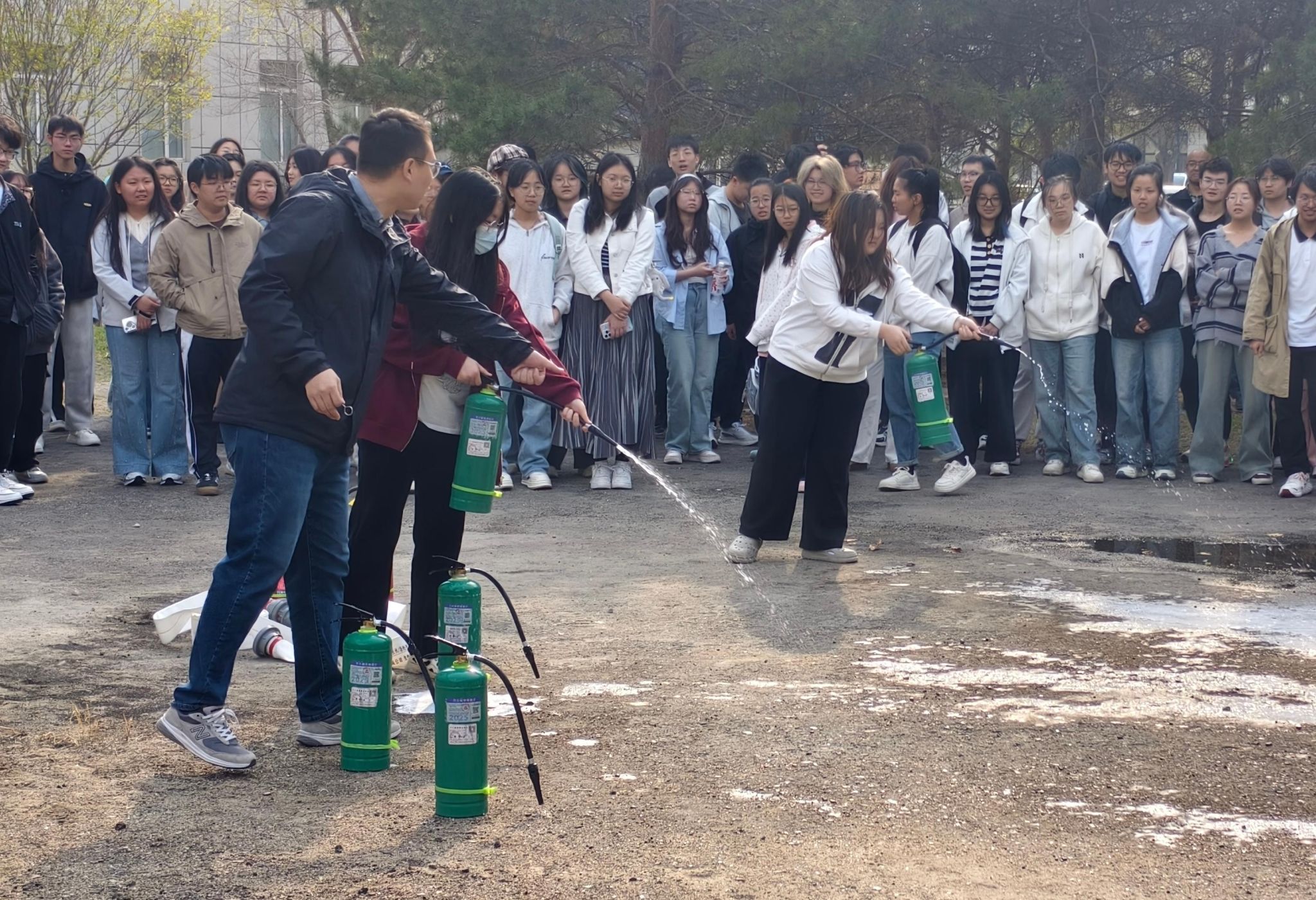讲座结束后,校保卫处防火科开展灭火器的实操培训,进一步增强了学生们的消防安全意识、掌握消防安全知识及增强应急处置能力。